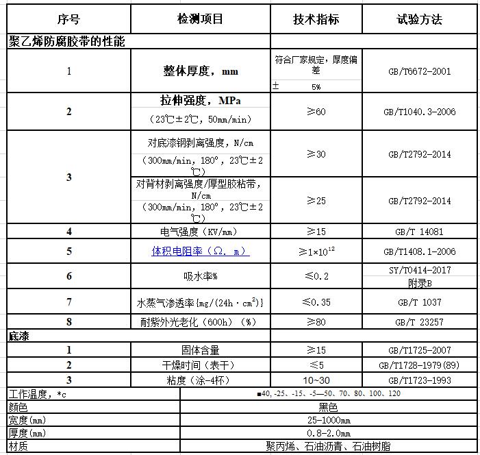 該產(chǎn)品基材為獨(dú)特的改性聚丙烯增強(qiáng)編織纖維布,采用丁基橡膠改性瀝青做防腐膠層。其基材是纖維結(jié)構(gòu)可有效地抵抗由于土壤應(yīng)力而產(chǎn)生的蠕變破壞,經(jīng)老化試驗(yàn)檢測證明其耐蝕時(shí)間達(dá)30年以上,各項(xiàng)檢測指標(biāo)符合SY/T 0414-2017標(biāo)準(zhǔn)要求, 完全達(dá)到ANSI/AWWAC20W00和NACEMR0274-95指標(biāo)。是管道冷防腐施工膠帶中的優(yōu)先選擇,也是防腐經(jīng)濟(jì)的選擇。