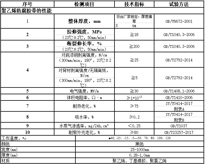 聚乙烯膠粘外帶、配套防腐底漆。